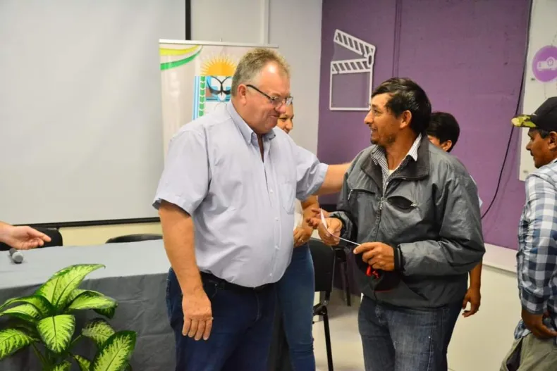 Participaron de esta entrega el Intendente Pio Sander, el secretario de Gobierno Ismael Pablo Barnes, el responsable del ANSES Castelli, Nazareno Quiroga, el titular del C.A.J Gustavo Yacuzzi, por el SENAF Gustavo Godoy, Hospital del Bicentenario Felix Ruiz y funcionarios del Gabinete.