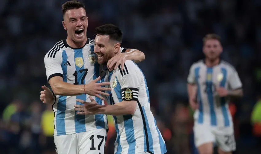 Al término del primer tiempo, Argentina le gana fácilmente a Curazao por 5 a 0. Leonel Messi, tres veces, Nicolás González y Enzo Fernández, con un golazo de afuera del área marcaron los goles de la Scaloneta. Con sus tres tantos, Messi llega a los 102 goles con la camiseta celeste y blanca.