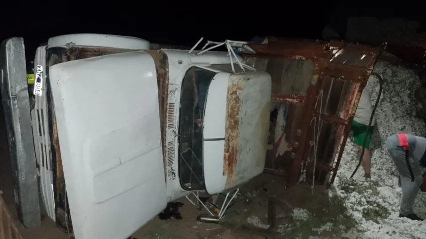 Según detalló al personal policial, alrededor de las 20:15 horas del martes, el conductor perdió el control del camión, despistó, y volcó, perdiendo su cargamento sobre la calle.