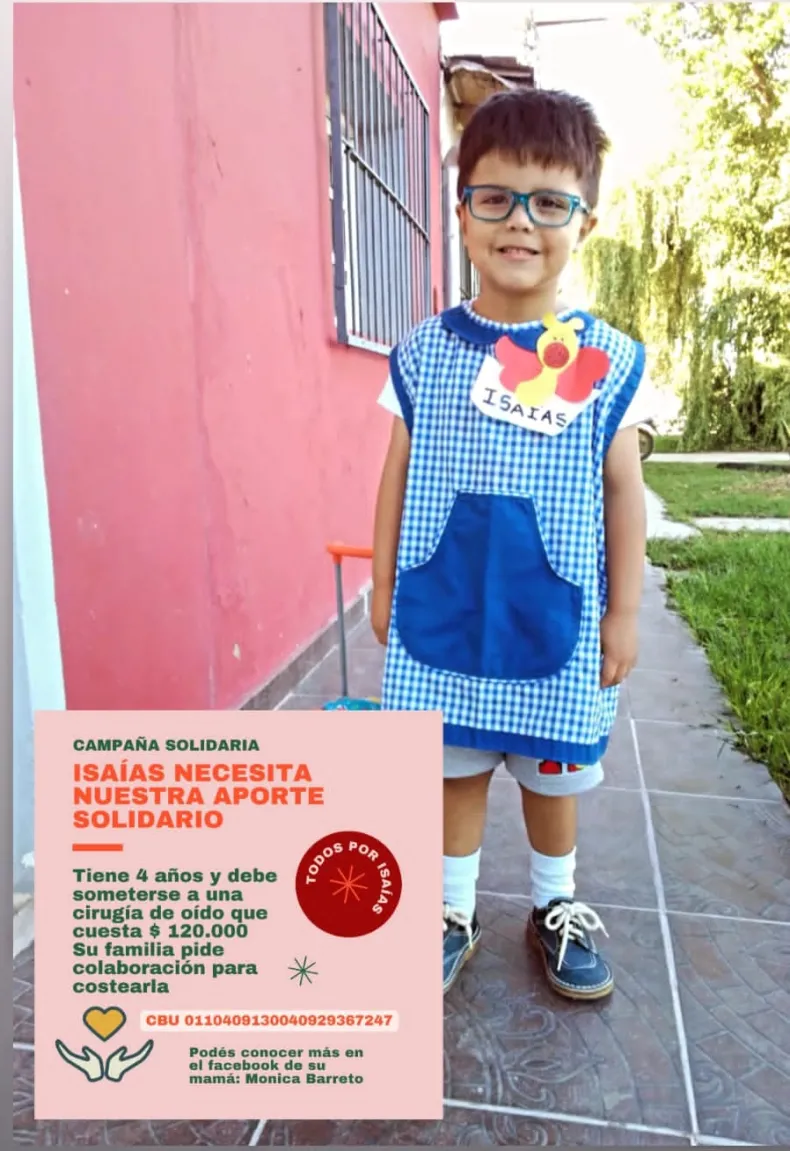 La mamá de un niño saenzpeñense llamado Isaías comenzó una campaña para poder cubrir los gastos de la operación y el tratamiento de su hijo quien sufre de infecciones en sus oídos. Por esto se le dificulta escuchar y hablar.