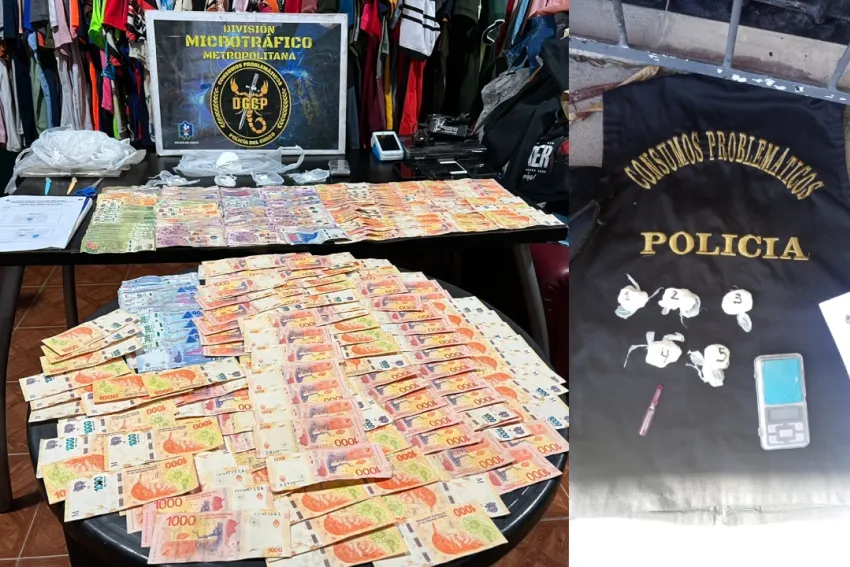 Dos detenidos, cocaína y más de 452 mil pesos: allanaron un bunker de drogas en Villa Palermo I