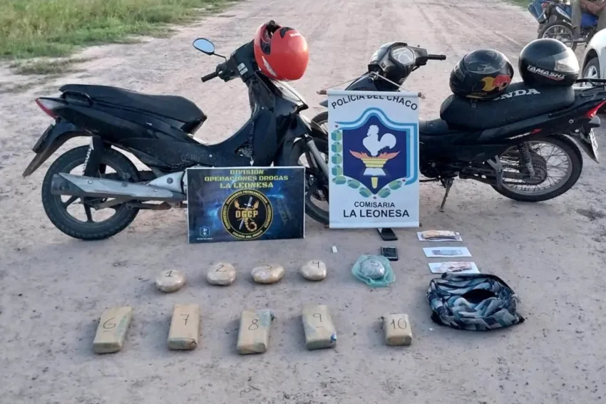 En La Leonesa, secuestraron seis kilos de marihuana distribuidos en 10 paquetes. Además, la Policía secuestró dos motocicletas relacionadas al caso. El hecho se dio en el marco de un operativo vehicular.