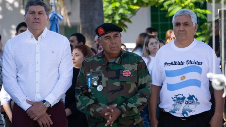 En la oportunidad, se contó con la presencia del intendente Bruno Cipolini, el presidente del Concejo Deliberante Pedro Egea; la directora Regional Educativa IV-A María Cristina Liskiewicz; autoridades de Gendarmería Nacional, Policía Federal, concejales, funcionarios municipales, representantes de Bomberos Voluntarios; integrantes de las distintas agrupaciones de Ex Combatientes de Malvinas; familiares, instituciones educativas, la Banda Municipal Fortunato Felcher y vecinos de la ciudad.