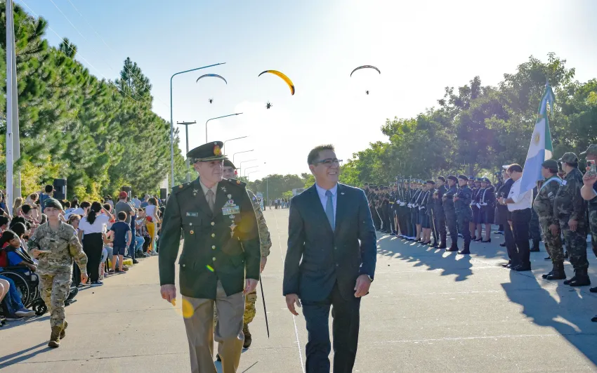 El intendente, Gustavo Martínez, encabezó el acto por el Día del Veterano y de los Caídos en la Guerra de Malvinas en el Parque de la Democracia, donde se llevó a cabo un desfile cívico militar para homenajear a los héroes del Atlántico Sur a 41 años de su gesta.