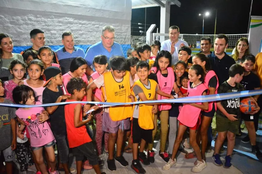 Castelli: vecinos celebraron la inauguración de las refacciones del playón deportivo del barrio La Paz