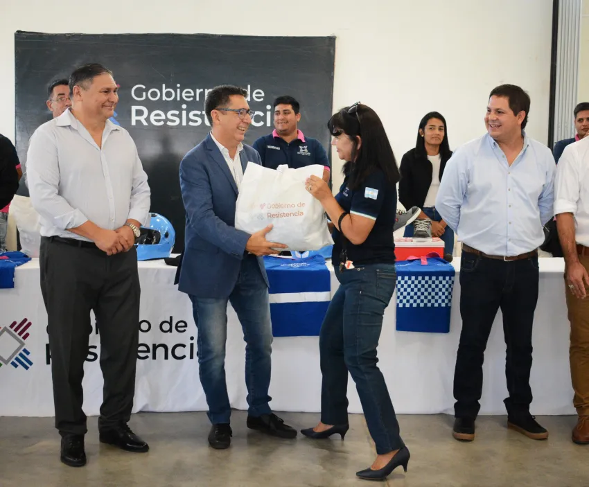 Gustavo Martínez encabezó la entrega de 304 kits de trabajo y cascos de seguridad al personal municipal de las direcciones de Tránsito y Transporte de Resistencia. Los mismos consistieron en chombas, pantalones, zapatos y zapatillas.