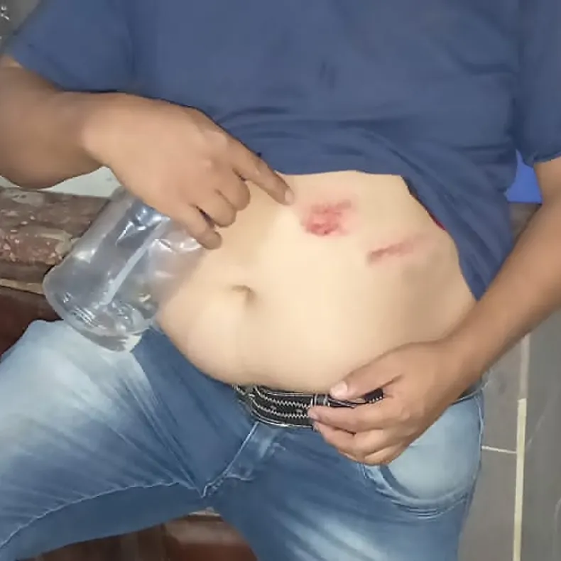 Luego el efectivo fue asistido por el galeno en turno con un diagnóstico "Escoriación En Región Dorsal Bajo; Escoriación En Región Abdominal Producida por Elemento Contuso".