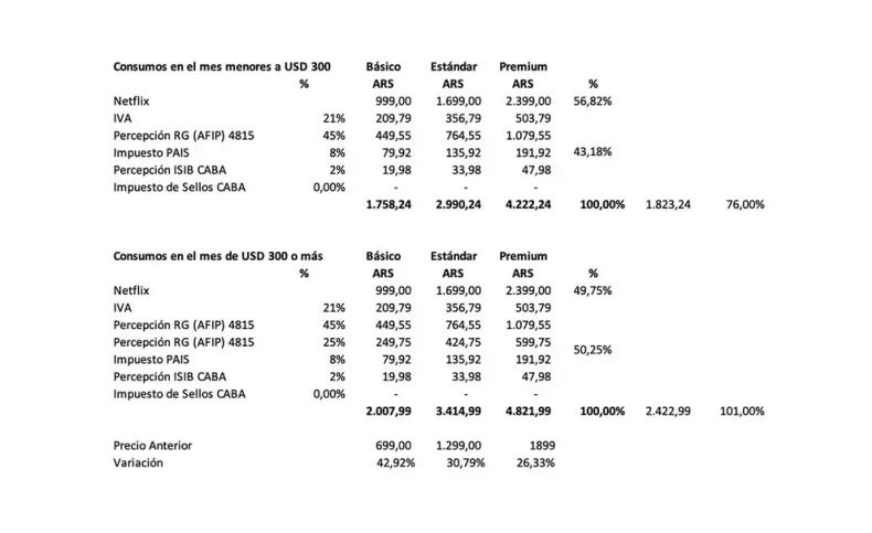 Netflix anunció un aumento para sus tarifas en Argentina que incluye subas de hasta un 42,9% para su plan básico, 30,8% para su plan estándar y 26,3% para su plan premium.