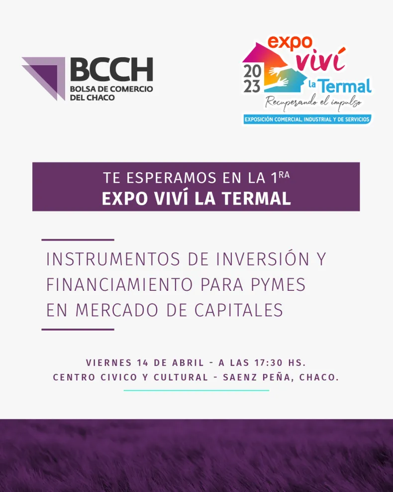 El próximo viernes 14 de abril, la Bolsa de Comercio del Chaco realizará una nueva jornada de charlas. En esta oportunidad será en el marco de la 1ra Expo Viví la Termal que se realizará en la ciudad de Sáenz Peña.