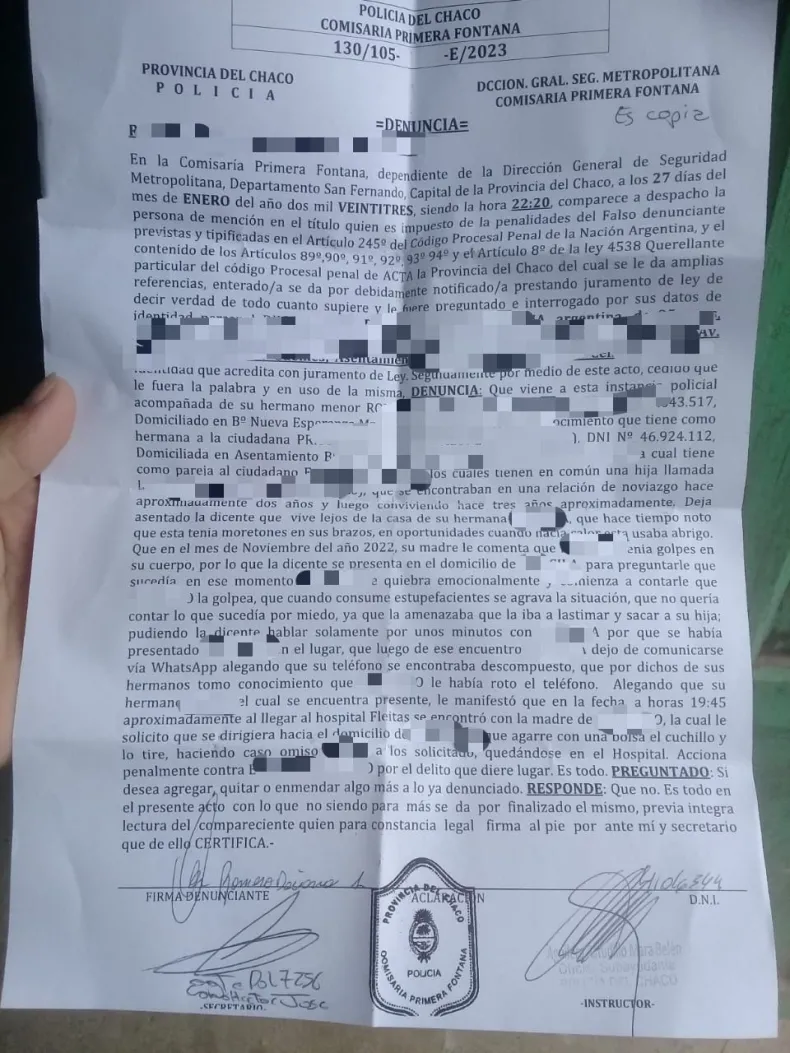 El 27 de enero de este año la familia de una joven de 21 años de la localidad de Fontana realizó una denuncia en la Comisaría Primera Fontana en contra de su pareja de 26 años para dejar constancia de que la jóven sufría violencia de género e incluso un intento de femicidio por parte de él.