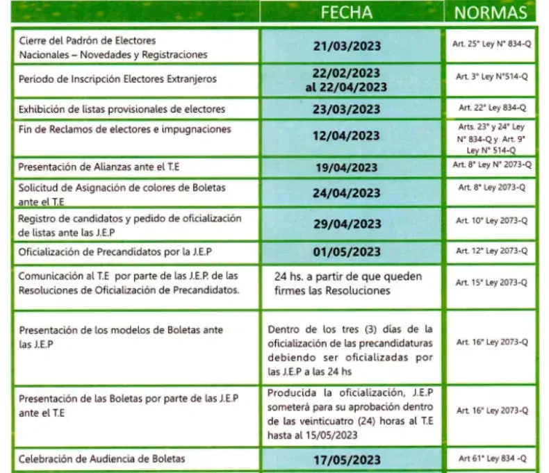 Abril es un mes clave de cara a las PASO que se realizarán el 18 de junio, ya que el 19 de este mes se deberán presentar las alianzas y diez días después a los precandidatos que competirán. Las generales se realizarán el 17 de septiembre, tal como se decretó en diciembre, y en el caso de haber segunda vuelta.