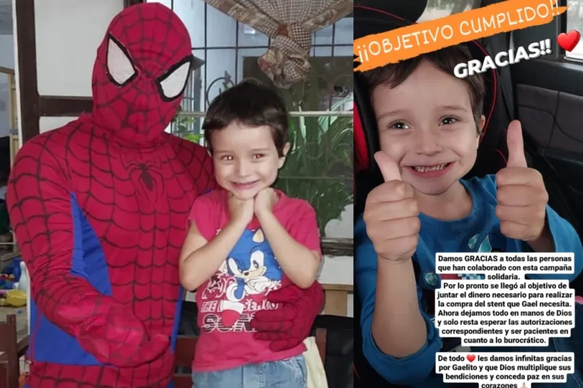 "Damos gracias a todas las personas que han colaborado con esta campaña solidaria", dijo la familia de Gael para comunicar las buenas noticias. Aún así, continúan con la colecta para pagar las internaciones del niño que estaría durante 45 días en Buenos Aires luego de que le coloquen el stent.
