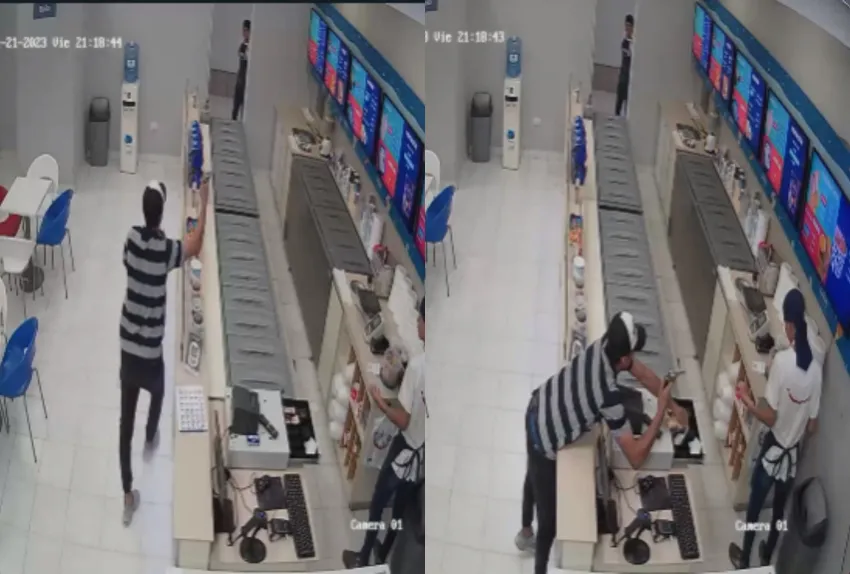 Un delincuente quedó filmado por las cámaras de seguridad del lugar cuando ingresó a una heladería y tras amenazar con un arma de fuego a los empleados se llevó dinero en efectivo.