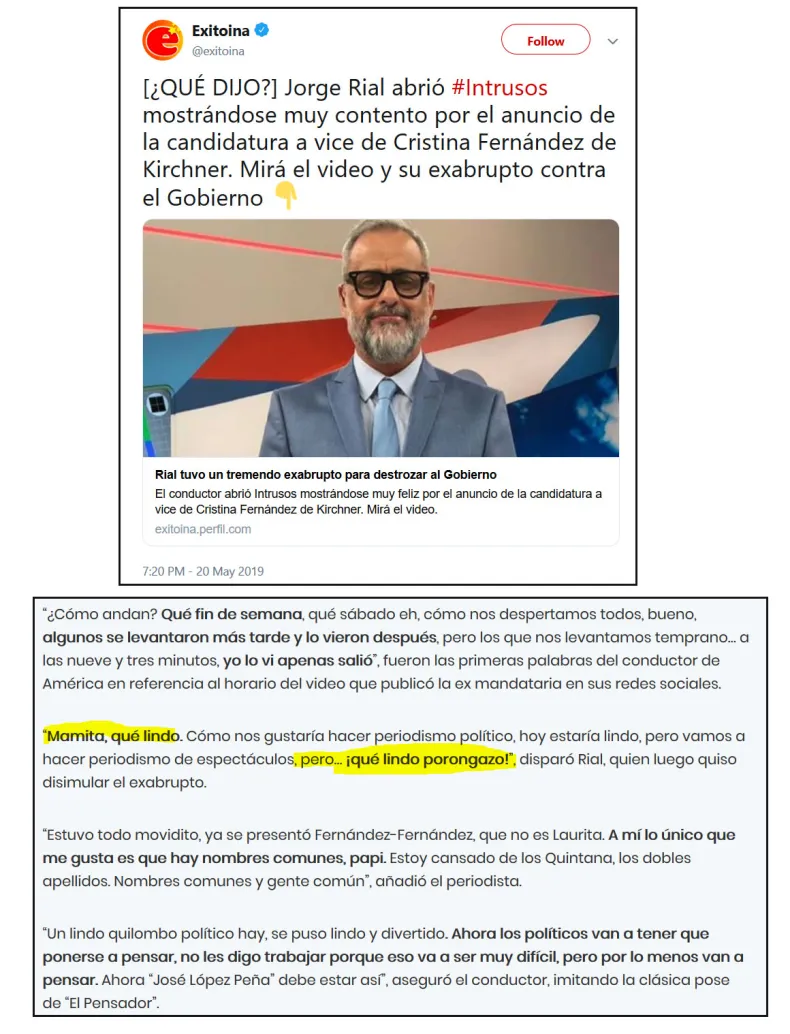 Entre el hilo de twitter se encuentran algunos personajes como: Jorge Rial, Iván Noble, Julieta Ortega, José Luis Espert, entre otros.