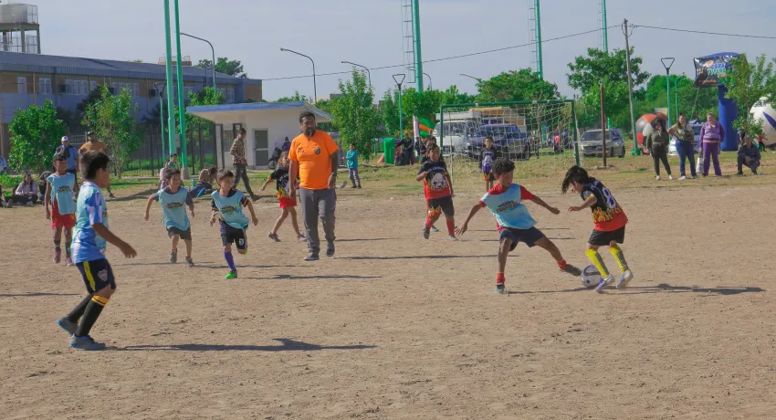 El profesor Carlos Aguirre, referente del equipo "Martín Fierro" de Villa Federal, consideró que el encuentro entre sus dirigidos y los demás cientos de niños presentes es la ocasión propicia para "venir a compartir y jugar en equipo, además de aprender otros valores".