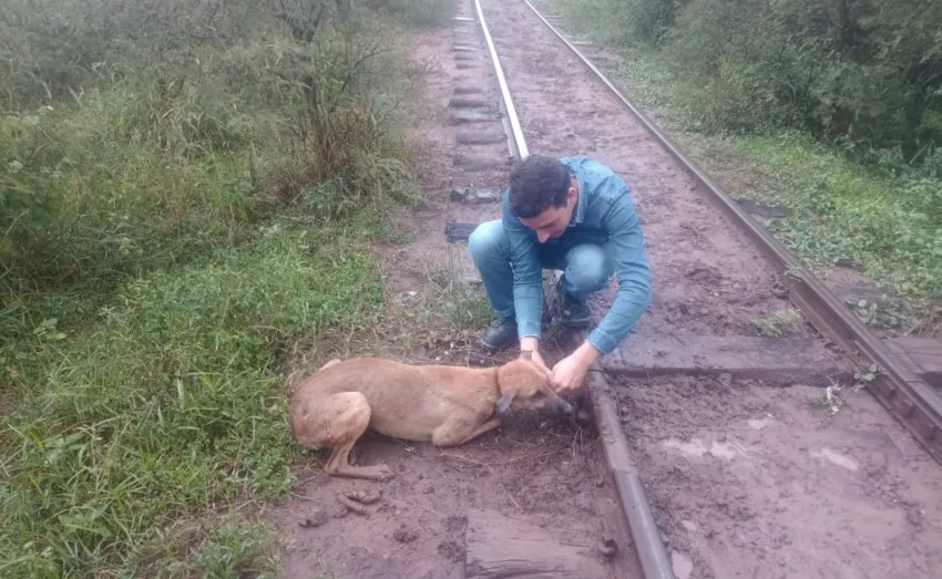 El Personal de conducción del transporte se percató de la presencia de un bulto a la vera de las vías férreas por lo que debieron frenar la unidad para corroborar qué obstruía el paso. Al bajar vieron que se tratada de perro que estaba encadenado al riel. Rápidamente, los trabajadores liberaron al animal y continuaron con el viaje.