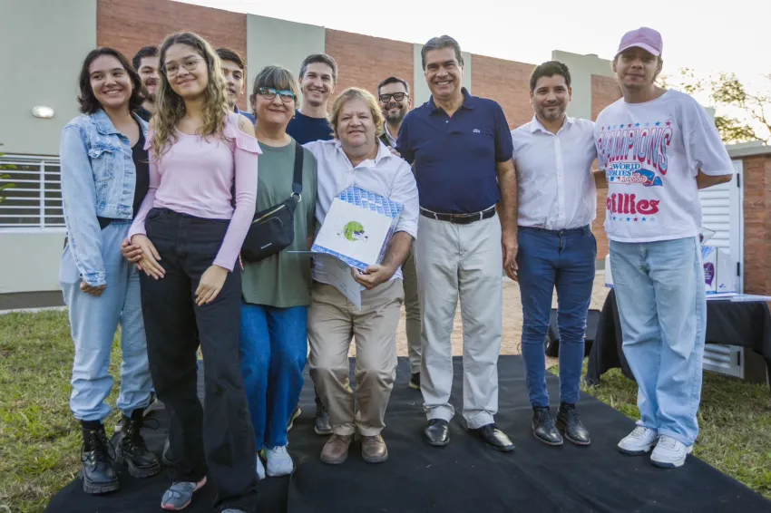 "Siento una profunda emoción por poder compartir hoy con ustedes la alegría de estas primeras 12 viviendas que entregamos, pero que, en definitiva, serán 45", expresó el mandatario, acompañado por el presidente del Instituto Provincial de Desarrollo Urbano y Vivienda, Diego Arévalo y los vocales Mirko Nicolich y Mariano Brahim.
