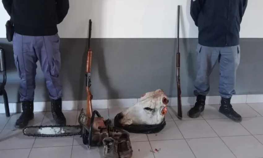 Del lugar también se secuestraron una cabeza de animal bovino, pelaje blanco, sin sus pabellones y un par de zapatillas marca Dromo, talle 41 de color negro, por interés en la causa que se investiga.
