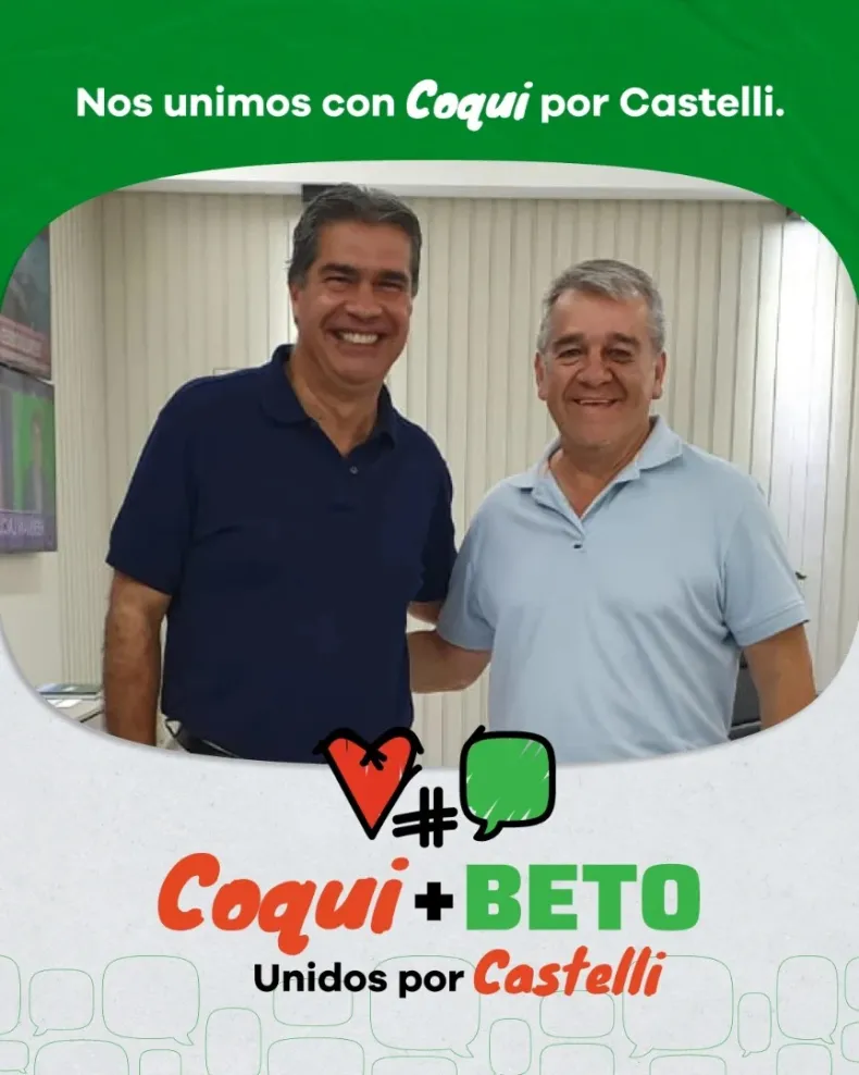 "Coqui + Beto", reza la campaña del exintendente de la localidad, que competirá en las PASO acompañando la lista del gobernador Jorge Capitanich y la vicegobernadora Analia Rach Quiroga, que van por la reelección.