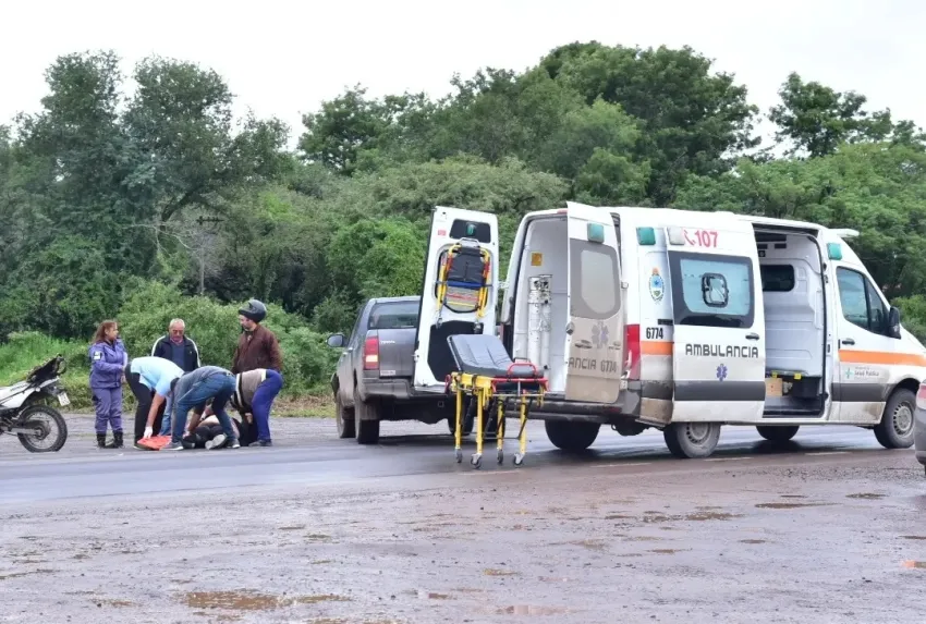 Este viernes, pasada las 13 horas, en medio de la llovizna se produjo un fuerte accidente de tránsito entre una camioneta Toyota Hilux y una motocicleta de 150 cc en el kilómetro 1.019 de la Ruta 11.