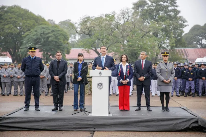 "Hacemos el máximo esfuerzo en generar las condiciones para que nuestra policía actúe, para lo cual siempre es necesario entender, proteger y valorar la acción policial en el marco del respeto irrestricto de los derechos humanos. Entendemos que el delito es un fenómeno que hiere y lacera las entrañas mismas de una sociedad y de una comunidad, por eso depende de jueces, de fiscales, de policías comprometidos y de autoridades absolutamente asociadas a un compromiso que permita a la comunidad vivir con tranquilidad", sostuvo el mandatario.