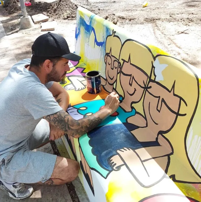 Germán Tolosa fue el artista encargado de intervenir los bancos de la Plaza 25 de Mayo