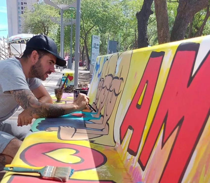 El reconocido artista nacido en Presidencia Roque Sáenz Peña intervino 10 bancos y un mural en la renovada plaza central de Resistencia. Según su visión, el arte es necesario "para crecer como comunidad".