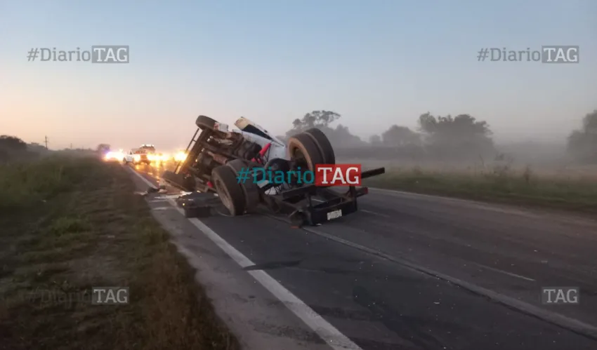 Pasadas las 6 de la mañana de este martes un camión que llevaba carne perdió el control y volcó sobre la Ruta 11, en cercanías al autódromo Yaco Guarnieri.