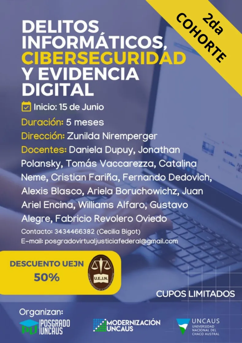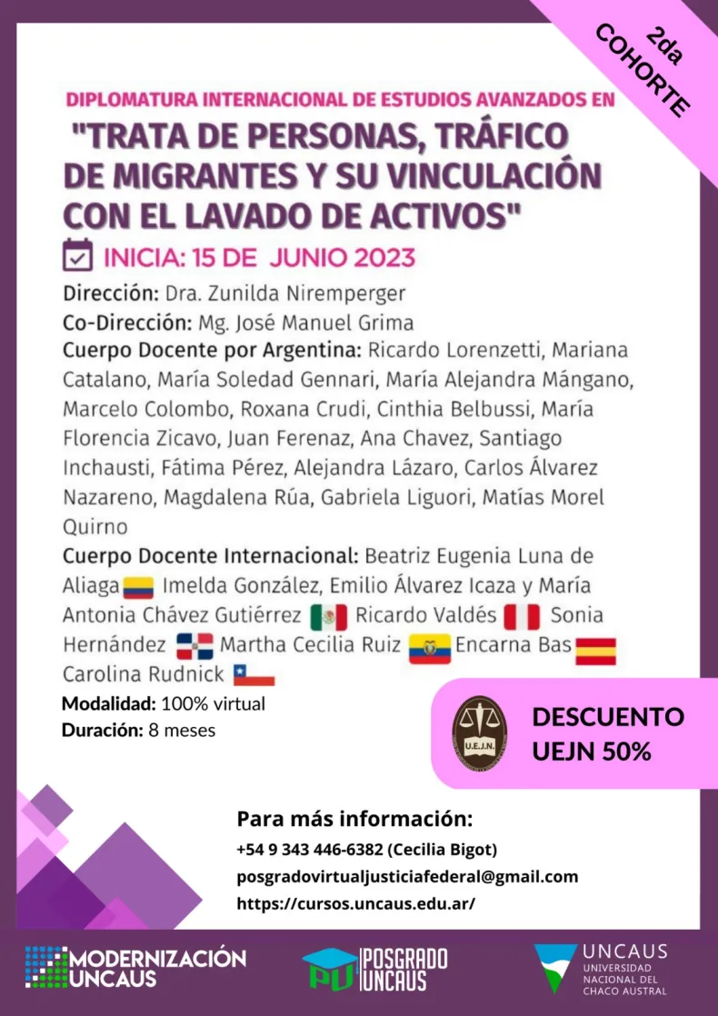 Se trata de la segunda cohorte de las Diplomaturas de Posgrado en la Universidad Nacional del Chaco Austral: Trata de Personas, Tráfico de Migrantes y Lavado de Activos; y Delitos Informáticos, Ciberseguridad y Evidencia Digital.
