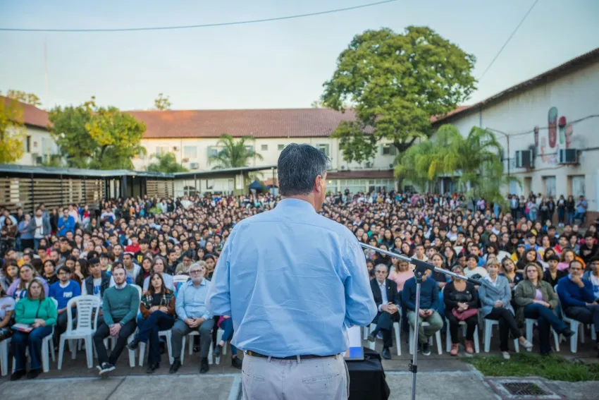 "Es importante lograr el compromiso de los estudiantes para que en el futuro continúen construyendo esta plataforma de desarrollo para el país, logrando que sean profesionales con sensibilidad y conciencia de servir a quien paga sus carreras, que es nada más ni nada menos que el pueblo", afirmó el mandatario, quien estuvo acompañado por la vicegobernadora Analía Rach Quiroga y el ministro de Planificación, Economía e Infraestructura, Santiago Pérez Pons.