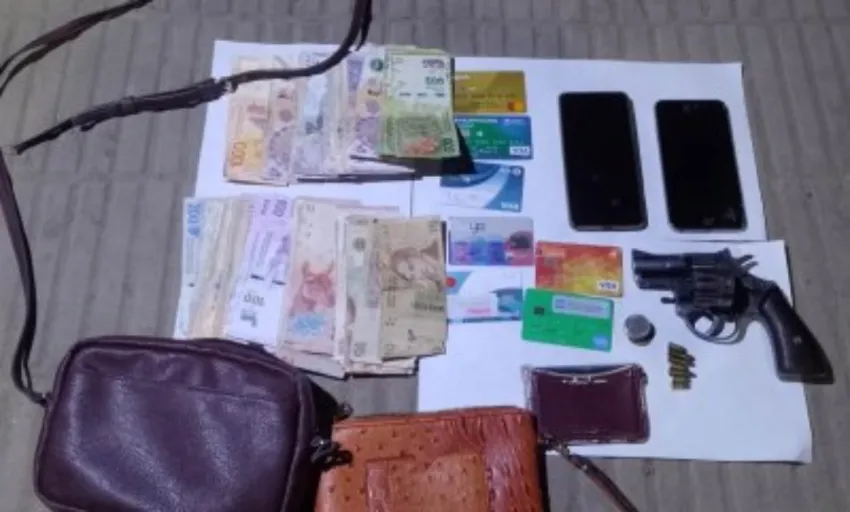 Allí realizaron una palpación sobre las prendas de vestir y descubrieron que en su cintura poseía un arma de fuego de la cual no supo dar explicaciones sobre su procedencia. Además, tras verificar el baúl del rodado hallaron una cartera con documentaciones pertenecientes a una mujer y dos celulares. Procedieron al secuestro del revólver calibre 22 con 7 cartuchos y de la cartera.