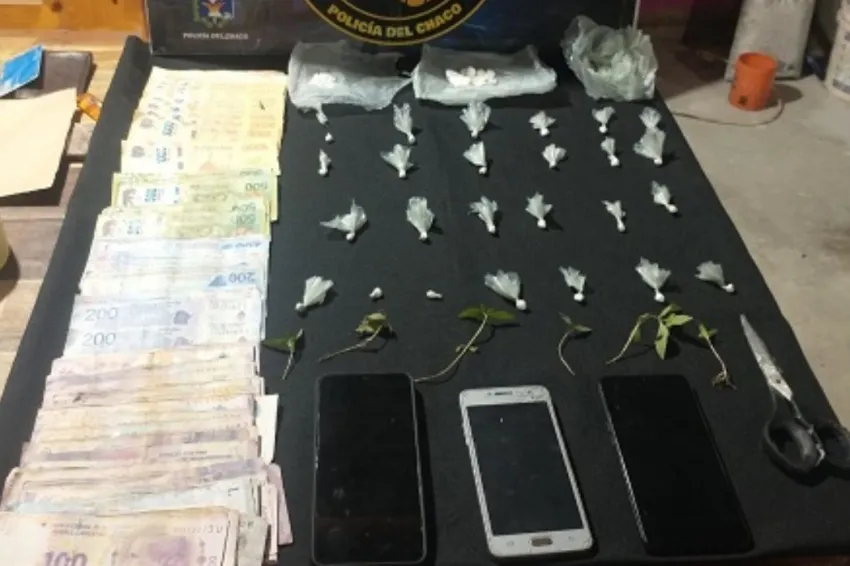 Los efectivos realizaron la prueba de campo de la sustancia encontrada, obteniendo un resultado positivo para cocaína con más de 20 gramos. Se cuestraron la droga, $ 43.000 en efectivo, tres teléfonos celulares y seis plantas pequeñas de cannabis.