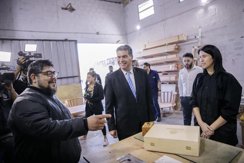 El gobernador Jorge Capitanich acompañó la inauguración del nuevo taller de la fábrica de muebles y objetos de diseño Genzio, en Resistencia. La instalación y adquisición de maquinaria demandó una inversión de $ 1.800.000, de los cuales $ 1.500.000 fueron financiados a través de la línea Fortalecer MiPyME.