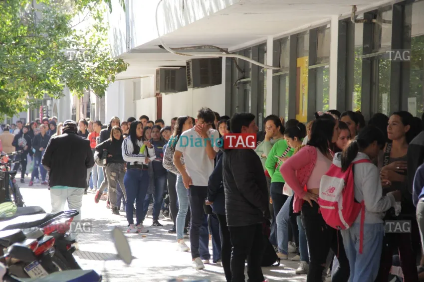 Las filas se extienden desde la sucursal del Correo Argentino, ubicada en la intersección de la Avenida Sarmiento y calle Hipólito Yrigoyen, abarca una cuadra sobre la Sarmiento y dobla por la calle Brown.