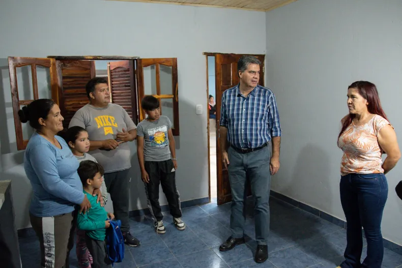 "Estamos con 400 entregas de viviendas, que se construyen en lugares donde efectivamente se pretende ir sosteniendo la regularización, urbanización de barrios populares y el mejoramiento de la infraestructura social básica. Aquí las vecinas y los vecinos pueden acceder al agua potable, energía eléctrica, que son cuestiones que requieren de inversiones en materia de urbanización", detalló el jefe del Ejecutivo Provincial.