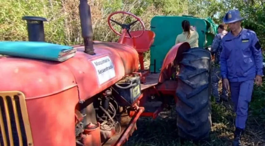 Los agentes de la policía realizaron el secuestro de una máquina pesada tipo topadora, un tractor, un batán y madera que se encontraba lista para cargar.