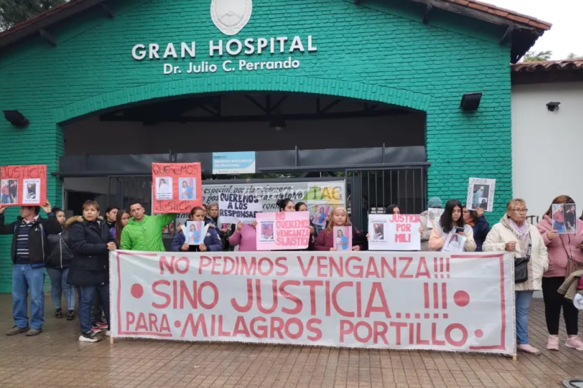 Este lunes por la mañana familiares y amigos de Milagros Portillo se manifestaron en el Hospital Perrando y reclamaron justicia por la muerte de la joven. Esta falleció el domingo 14 de mayo en la institución producto de lo que sería una mala praxis y violencia obstétrica. "Ignoraron todas las recomendaciones de su obstetra de cabecera. Le empezaron a inducir el parto diciéndole que ella podía tener el parto natural cuando estaba indicado la cesárea", aseguró la tía de la joven.
