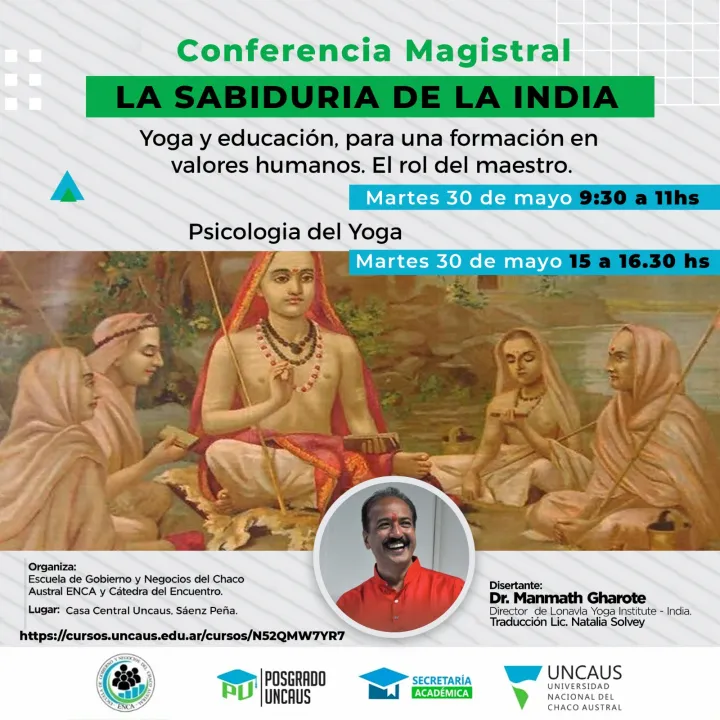 UNCAUS abrió inscripciones para conferencias de "la sabiduría de la India", en Resistencia y Sáenz Peña