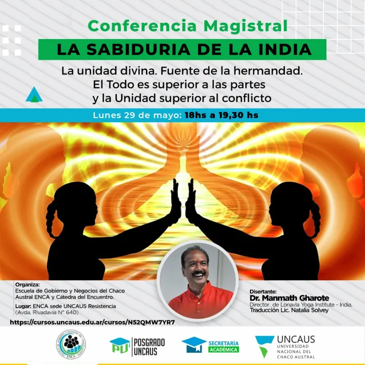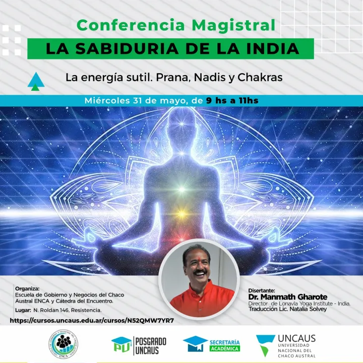 La Universidad Nacional del Chaco Austral y la Escuela de Gobierno y Negocios del Chaco Austral (ENCA), abrieron inscripciones para conferencias magistrales que se realizarán en la ciudad de Presidencia Roque Sáenz Peña y Resistencia, en el mes de mayo, con las siguientes temáticas: La unidad divina. Fuente de la hermandad. El Todo es superior a las partes y la Unidad superior al conflicto; Yoga y educación, para una formación en valores humanos. El rol del maestro; Psicología del Yoga; La energía sutil. Prana, Nadis y Chakras.