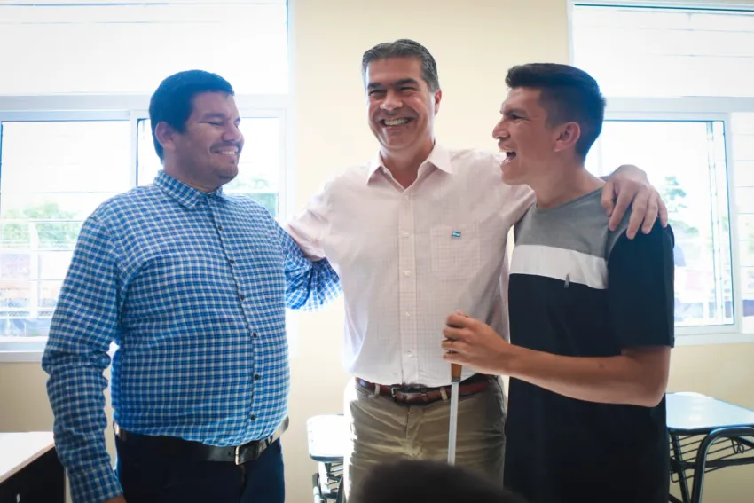 Lo acompañaron los ministros de Educación, Aldo Lineras, y de Planificación, Economía e Infraestructura, Santiago Pérez Pons. También el intendente Jorge Frank; la secretaria de Derechos Humanos y Géneros, Silvana Pérez; la subsecretaria de Derechos Humanos, Nayla Bosch; el subsecretario de Fortalecimiento de Gobiernos Locales, Rubén Guillon; el diputado provincial Rodolfo Schwartz; los intendentes de Castelli Pío Sander y de Fuerte Esperanza, Inés Ortega; y la directora de la Escuela Especial N°14 Patricia Pujol.