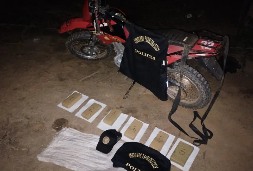 Evadió un control policial huyendo a pie: dejó su moto y más de cuatro kilos de marihuana abandonados