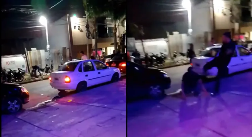 Según el video difundido por redes sociales, se puede apreciar a una persona en estado de exaltación por ser expulsado de la discoteca. El mismo se dirige hacia la vereda de enfrente para agarrar una piedra y lanzarla contra el patovica.