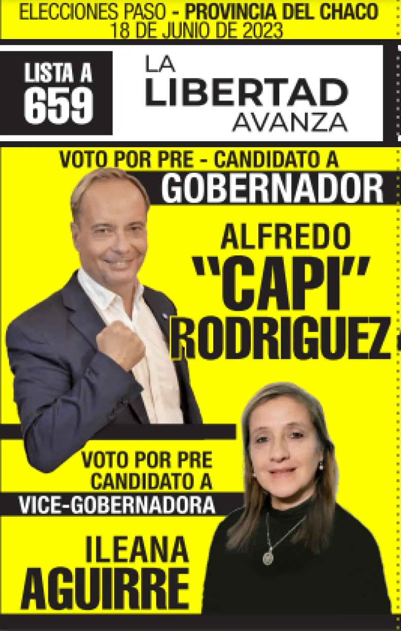 El espacio de Javier Milei en la provincia propone a Alfredo Rodríguez como gobernador y a la contadora Ileana Aguirre como vicegobernadora.