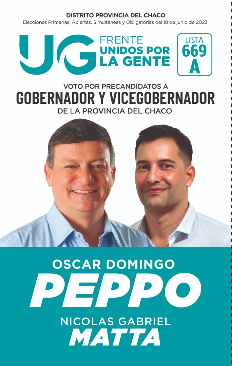 Domingo Peppo y Nicolás Matta integran la fórmula que competirán por la gobernación en este partido.