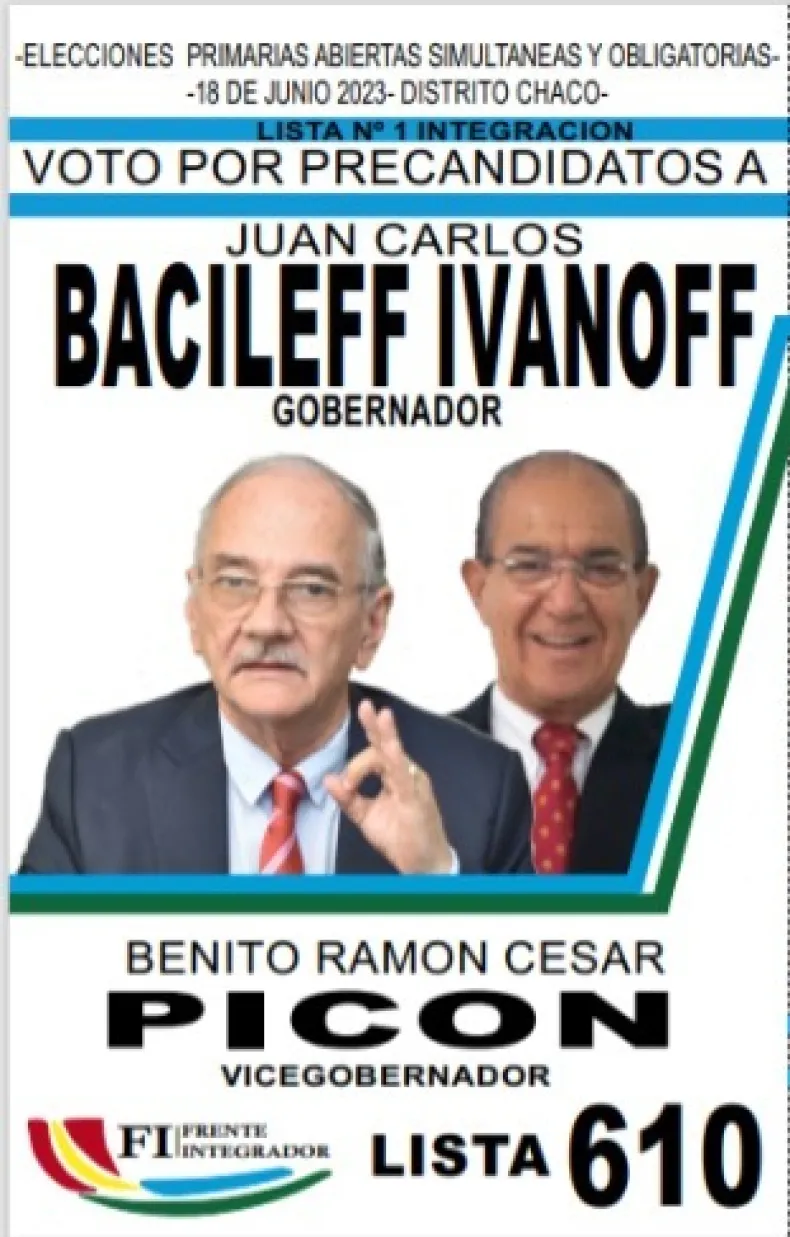 Juan Carlos Bacileff Ivanoff y César Picón es la fórmula que el partido oficializó para estas elecciones, cabe recordar que son las mismas que en el 2019.