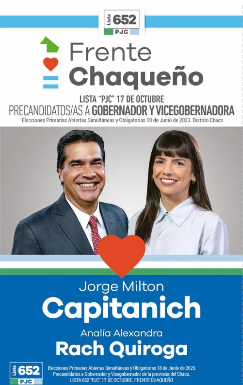 La Fórmula que irá por la reelección en el Frente Chaqueño está integrada por Jorge Milton Capitanich y Analía Rach Quiroga.