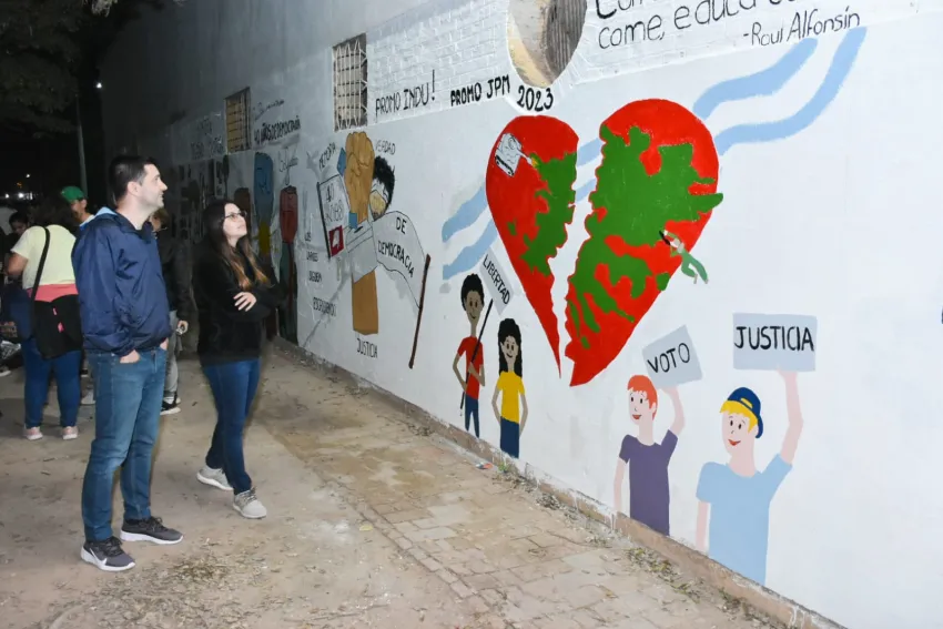 Con la temática "40 años de Democracia", en la tarde del domingo, los chicos de las promociones de los colegios secundarios, participaron de la propuesta de la Dirección de Juventud y el Consejo Estudiantil Municipal, para pintar murales en avenida 28 entre 17 y 19 y en calle 17 entre 26 y 28.