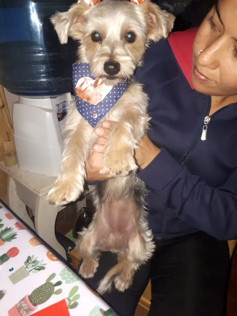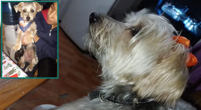 Pía es una yorshire que en el momento que se perdió se encontraba solo con un moñito naranja en una de sus orejitas.