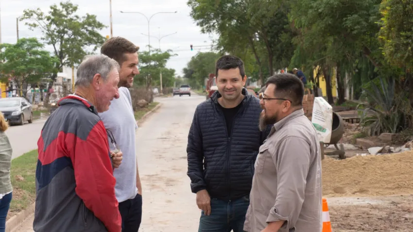 El intendente Bruno Cipolini junto al secretario de Servicios Públicos, Pablo Álvarez, visitó el barrio Reserva Este donde actualmente se está trabajando en la ampliación y revestimiento del canal de calle 000 desde la calle 9 hasta la 5.