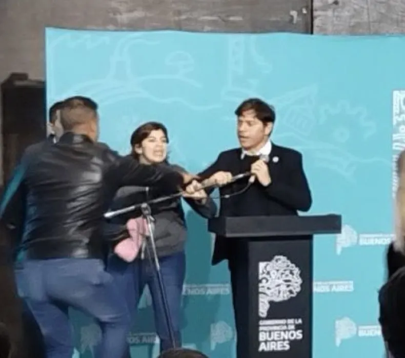 Este jueves una mujer llamada Fernanda subió al escenario en pleno acto encabezado por el gobernador bonaerense Axel Kicillof en Brandsen. La protagonista terminó retenida por el personal de seguridad del mandatario, y contó que la policía fue a su domicilio.